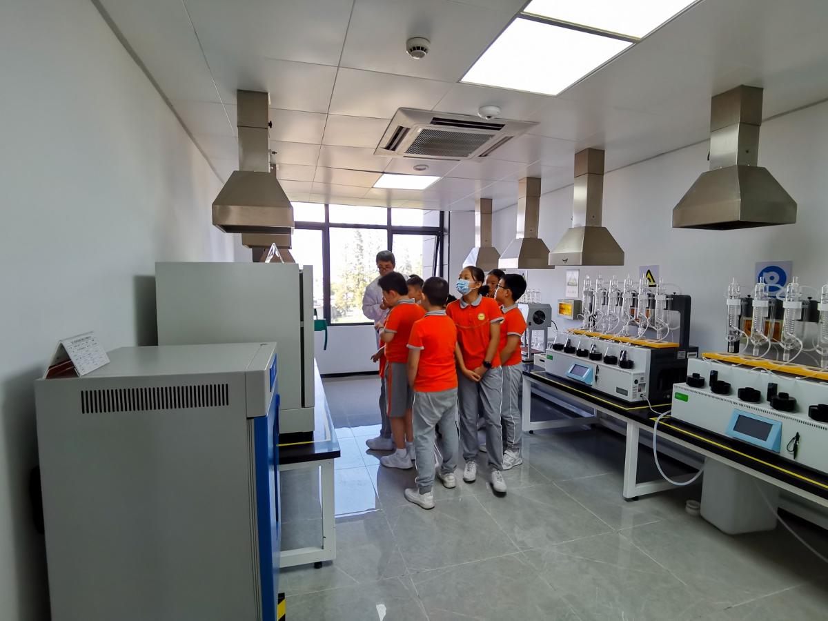 孩子们来到厂区的第一站是一节安全教育课。作为一家危废处置企业,安全既是企业的立身之本,更是得以发展的成事之基。安环部于主管以自身的经历为实例,生动地说明了听从指挥、遵守安全规则的重要性,并教会孩子们如何正确佩戴安全帽、合理地?;ず米约?。